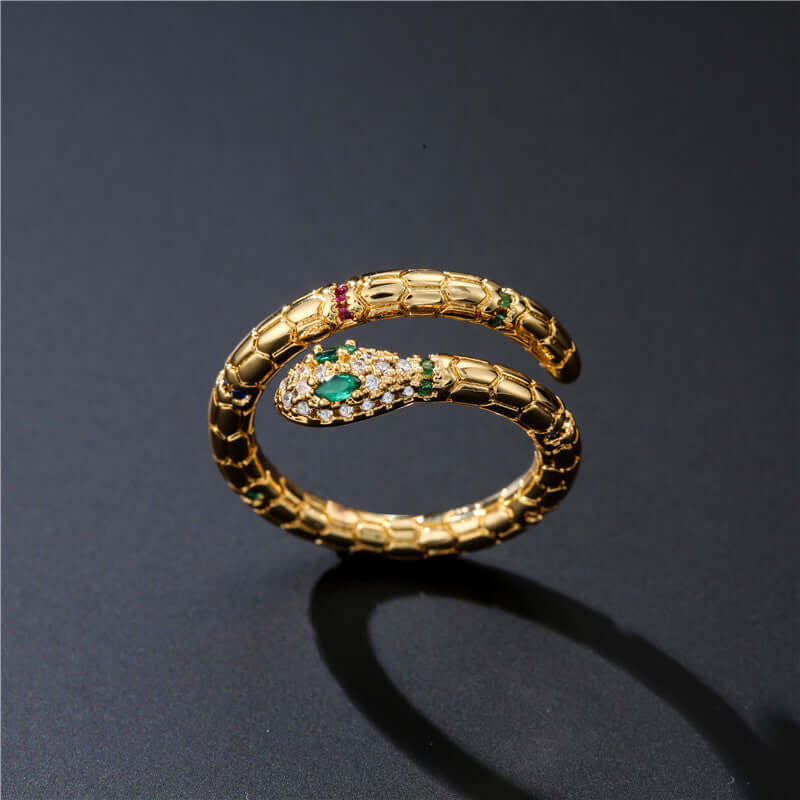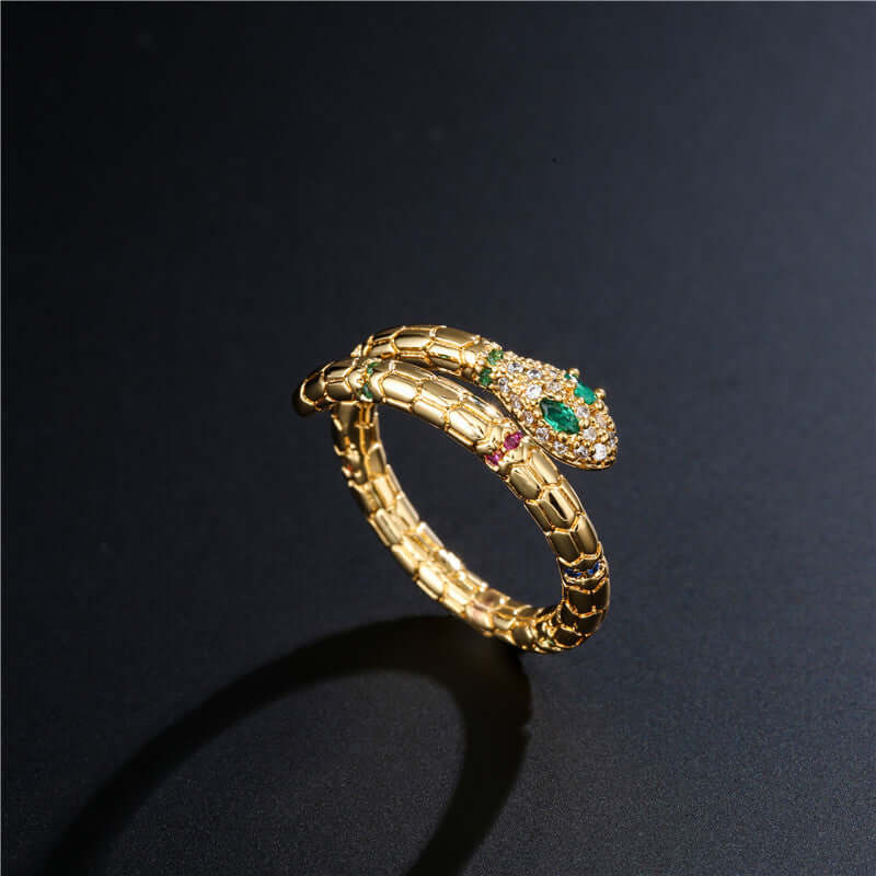 Fashion Gold Color Snake Ring For Women Girl Adjustable Exquisite Shiny Cubic Zirconia Finger Ring Wedding Jewelry Gift